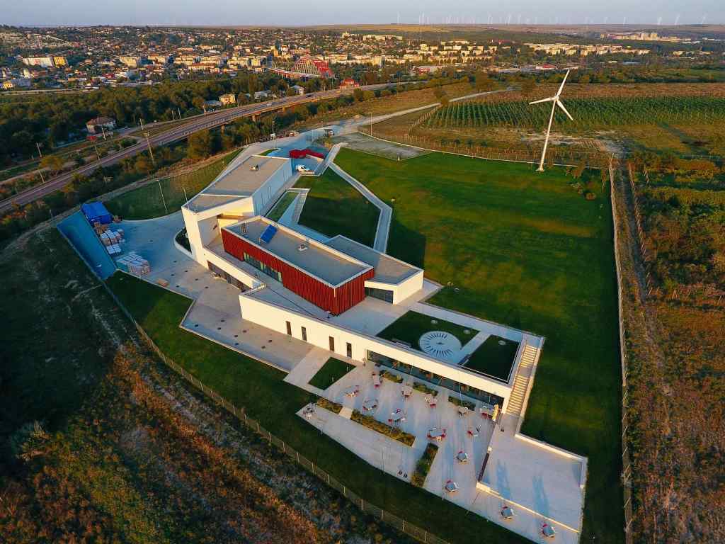 Construită pe malul înalt al Dunării, lângă localitatea Cernavodă, cu vedere la Dunăre şi la podul Anghel Saligny, crama ultramodernă a fost parte dintr-o investiţie de peste 6 milioane de euro, din care două milioane au provenit din fonduri europene.